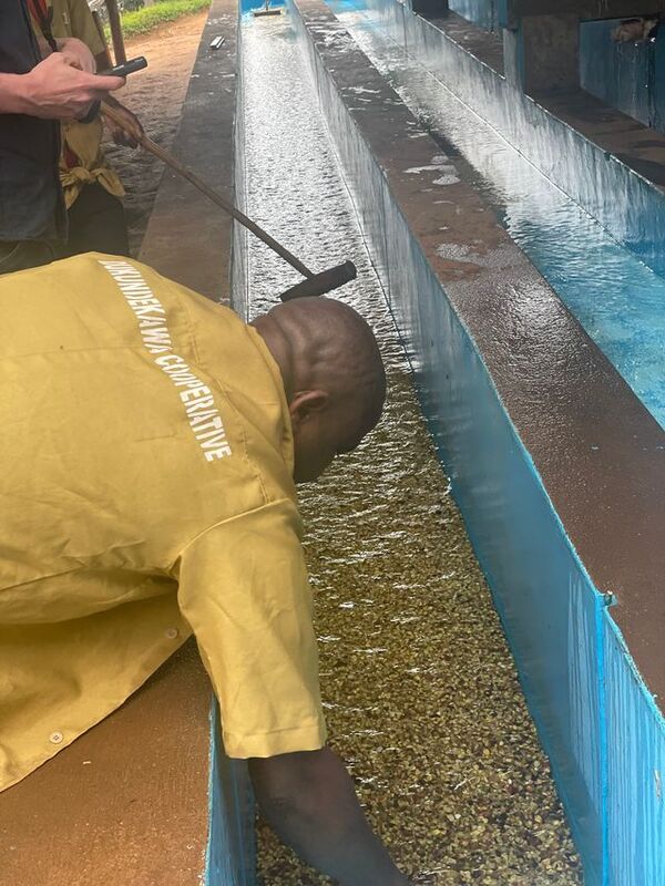 Cherries are hand-picked only when fully ripe and then pulped that same evening using a mechanical pulper that divides the beans into three grades by weight. After pulping, the coffee is fermented overnight (for around 12 hours) and then graded again using flotation channels that sort the coffee by weight (the heaviest – or A1 – usually being the best). The wet parchment is then soaked in water for between 18 and 24 hours to stabilise moisture content.